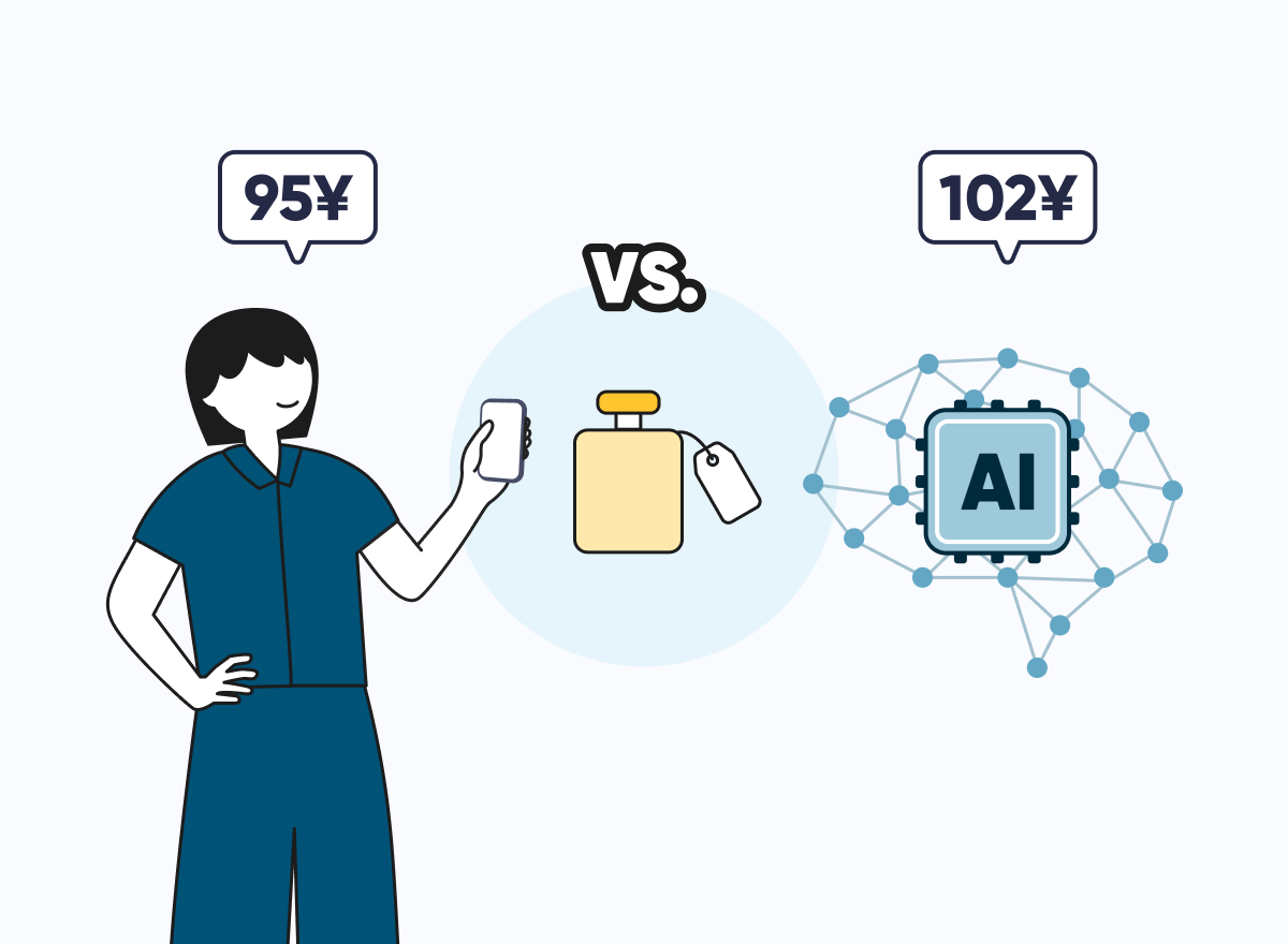 - 직원이 스마트폰에 탑재된 소프트웨어로 제품의 바코드를 찍으면 AI가 가격을 제시합니다.