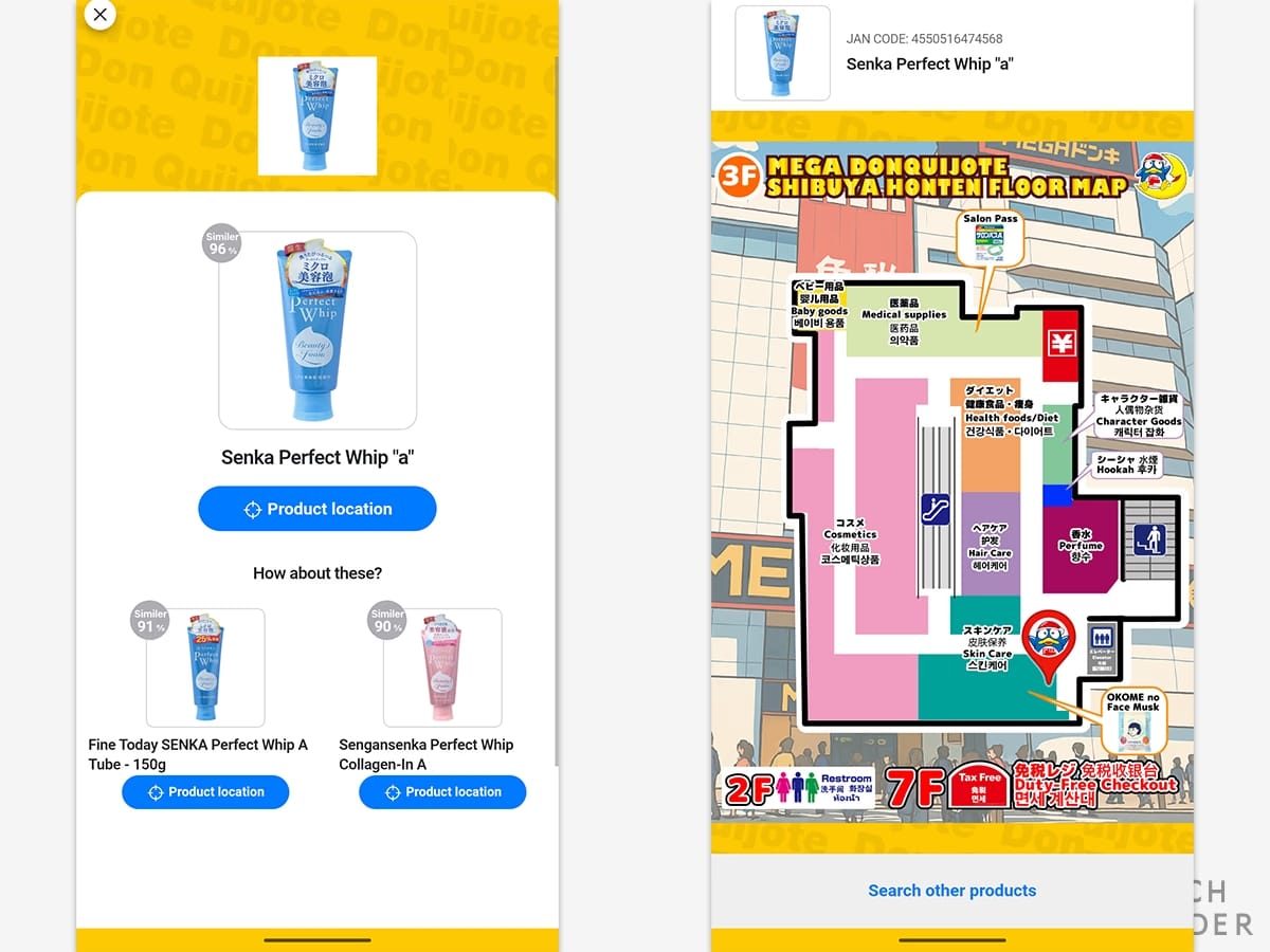 하지만 문제는 직원도 특정 제품이 어디에 있는지 모를 때가 많다는 거였습니다. 도쿄 시부야 본점(메가 돈키호테)의 경우 이런 문제가 더 도드라졌고요. 지하부터 지상 7층까지 운영하지만 진열 데이터베이스조차 구축돼 있지 않아 직원들은 고객의 문의를 해결하는 데 업무 시간을 빼앗겼습니다. 하루 평균 11만 명이 방문한다고 하니 응대하다가 퇴근하는 건 과언이 아니겠고요.