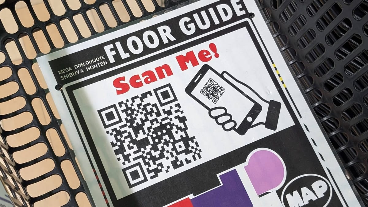 돈키호테 시부야 본점에 설치된 SCAN ME 서비스. 장바구니의 QR코드를 스캔하면 우측 이미지와 같은 서비스를 이용할 수 있다. ⓒTech Insider JP