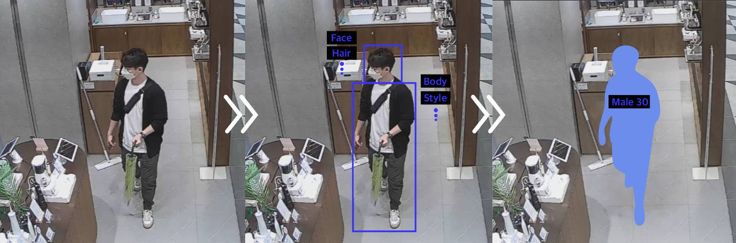 타 경쟁사의 분석 엔진은 방문객의 얼굴을 기반으로 성별과 연령대를 유추합니다. 하지만 방문객이 마스크를 쓰면 얼굴이 일부 가려지기 때문에, 얼굴 기반의 분석 엔진은 낮은 분석 정확성을 보이게 되는데요.