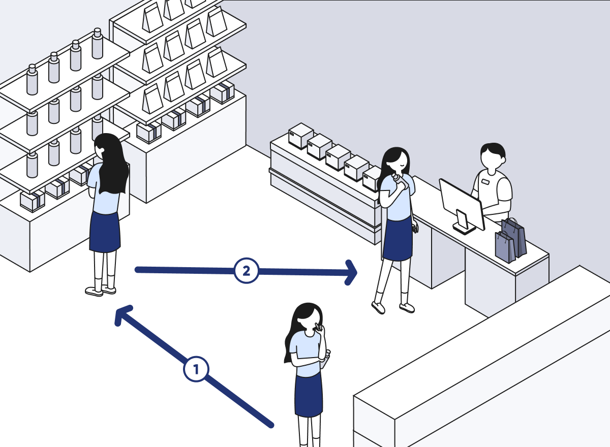 고객 여정을 확인하면 매장 레이아웃이나 환경을 효율화할 수 있습니다. 예를 들어 특정 지점의 이탈률이 유독 높을 때 콘텐츠를 교체해 이탈률을 줄이는 것입니다. 또한 같은 구성의 매대를 서로 다른 구역에 배치하여 방문 비율이 더 높은 곳을 측정하고, 최종 위치를 선정하는 식의 프로젝트를 진행해볼 수도 있습니다.