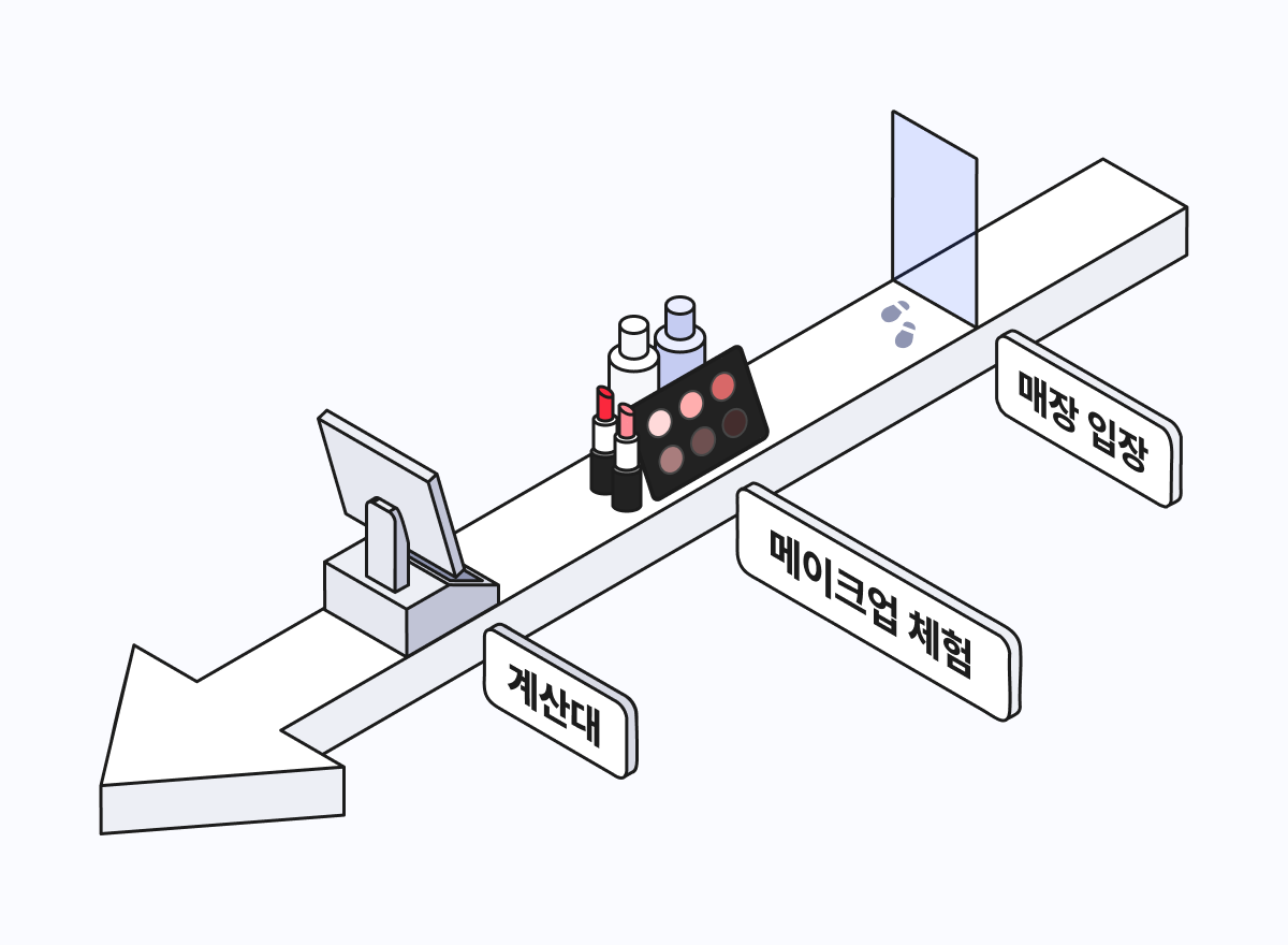 체험형 뷰티 매장을 운영하는 가장 큰 이유는 현장에서 매출 발생을 극대화하기 위해서입니다. 브랜드와 상품의 장점을 깊게 알도록 해 지갑을 열게끔 하는 거죠. 이런 운영 전략의 성과를 측정하기에 적합한 지표는 ‘전환율’입니다. 매장에 입장한 고객 중 얼마나 많은 사람이 계산대로 발걸음을 옮기는지 그 비중을 직관적으로 알아야 합니다.