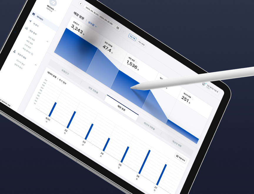 추가적인 카메라를 구매하거나 설치하는 과정 없이, 현재 설치되어 있는 CCTV 만으로 간편하게 방문객을 분석할 수 있다는 점이 대표적입니다. 그 밖에도 전문 데이터 사이언티스트가 구현한 웹 대시보드 '매쉬보드(mAsh Board)'로 가시적인 데이터를 제공하는 점, ‘종합 분석 서비스’를 통해 매장 운영 성과를 총체적으로 해석한 리포트를 제작해드리는 점 등을 꼽을 수 있습니다.