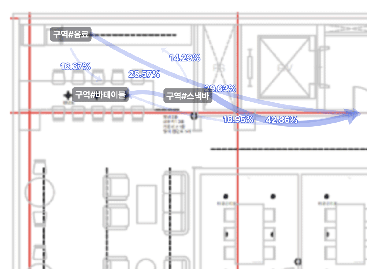 - CCTV 기반 AI 솔루션: 전체 구매·상담 전환율과 구역별 전환율 등 섬세한 데이터를 모두 측정할 수 있습니다. 체류 시간 기반으로 전환율이 어떻게 달라지는지, 매장 방문객의 성별&연령대 세그멘테이션에 따라 도드라지는 부분이 있는지 등을 파악할 수 있습니다.