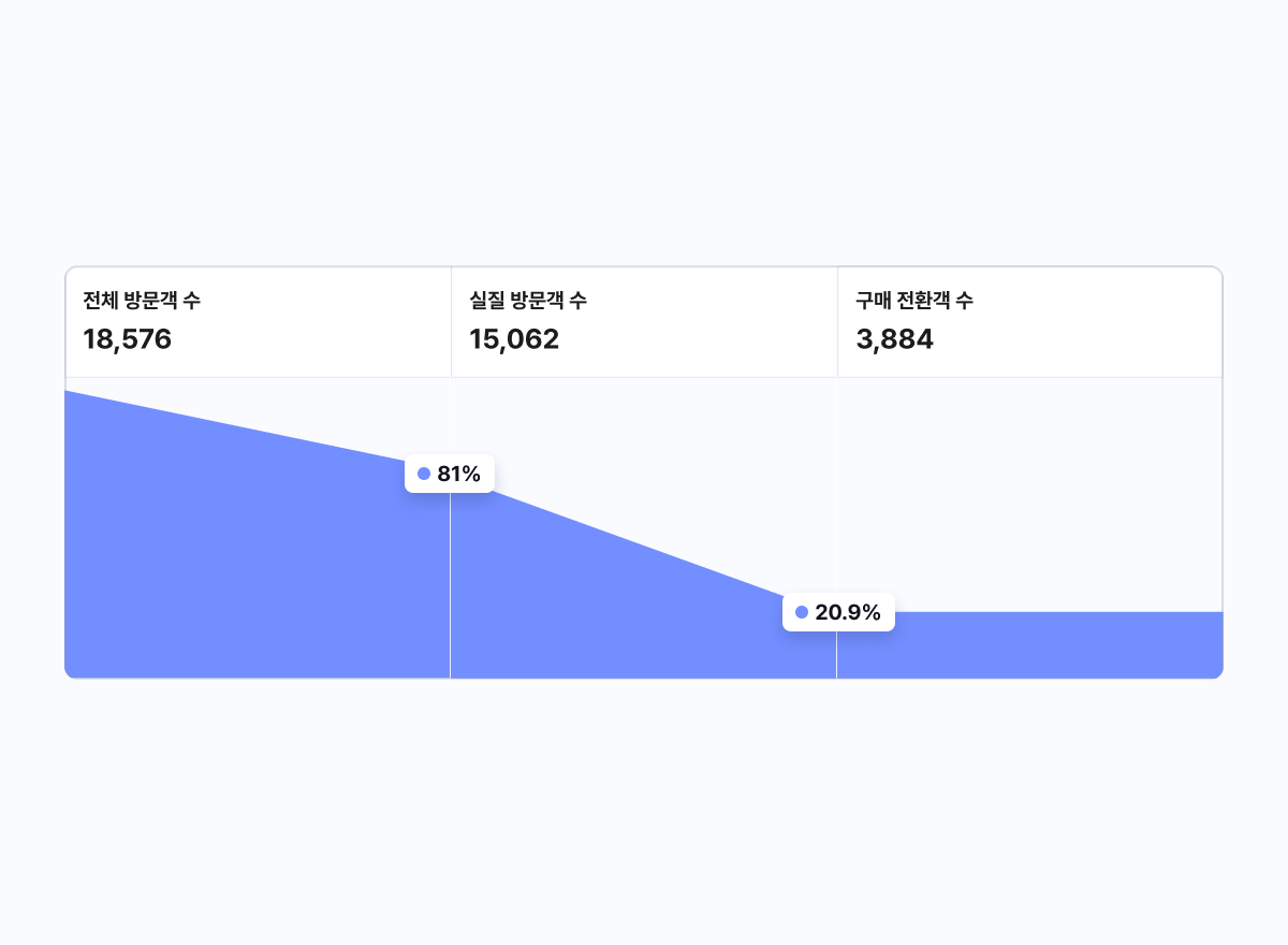 실질 방문 비율이 낮으면 방문객의 몰입을 방해하는 요소가 많았다고 해석할 수 있습니다. 동선이 비효율적이거나, 전시·체험 콘텐츠가 매력적이지 않았다는 의미입니다. 반대로 실질 방문 비율이 높으면, 기획한 콘텐츠를 충분히 즐긴 고객이 많았다는 뜻이겠고요.