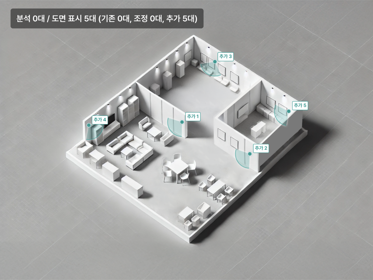 공간 규모와 구조물 복잡도에 따라 다릅니다. 상담 진행 및 행사장 도면 확인 후, 메이아이가 CCTV 개수를 산출하여 팝업스토어 고객사에 제안합니다.
