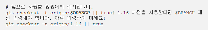 각 명령어 중 autogen.sh, make 하는 데에 약 10~20분의 시간이 걸리는 점은 참고해 주세요. 이후, branch 종류를 확인하고 원하는 버전을 $BRANCH 위치에 넣어주어야 합니다. 여기서는 1.16 버전을 사용해 보겠습니다.