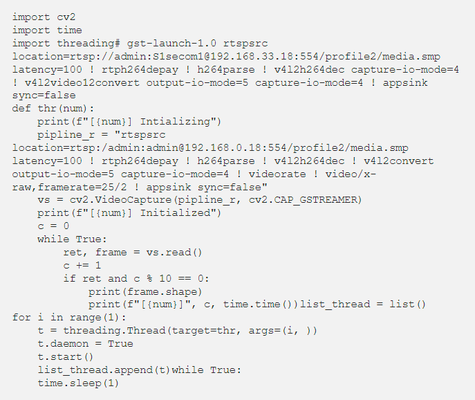ip camera의 rtsp protocol에 접근해 영상을 가져 오는 테스트 코드