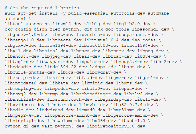 Gstreamer의 최신 버전을 설치하는 것은 매우 간단합니다. 이곳을 눌러서 이동한 뒤, 자신의 운영체제에 해당하는 명령어를 ‘복사- 붙여넣기’만 하면 됩니다. Ubuntu 18.04 LTS를 설치한 라즈베리파이4에는 [Install GStreamer on Ubuntu or Debian] 의 코드를 사용해야겠네요!