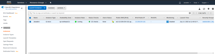 저는 이미 실행되고 있는 인스턴스가 하나 있습니다. 좌측 상단의 파란색 버튼을 눌러 인스턴스를 생성합니다. 다음과 같이 설정하여 하나 만들어주세요!