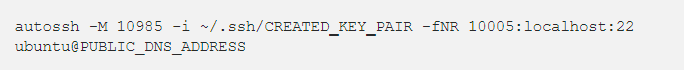 이제 C 컴퓨터에서 다음의 명령어로 터널을 통해, A 컴퓨터로 접속할 수 있습니다. 이때 USERNAME은 서버 B의 username인 ubuntu가 아니라, A 컴퓨터의 username임을 유의해 주세요. 물론 생성된 키 페어도 미리 C 컴퓨터로 옮겨 놓고 권한 설정도 동일하게 해 주셔야 합니다.