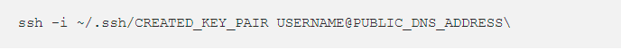 ssh ubuntu@PUBLIC_DNS_ADDRESS