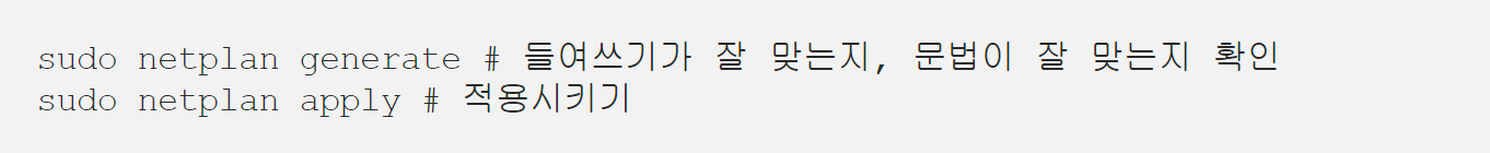 '/etc/netplan/50-cloud-init.yaml'이라는 파일을 수정해 주어야 합니다. 파일명은 다를 수 있으나, 확장명이 yaml인 파일이 한 개 있을 것입니다.