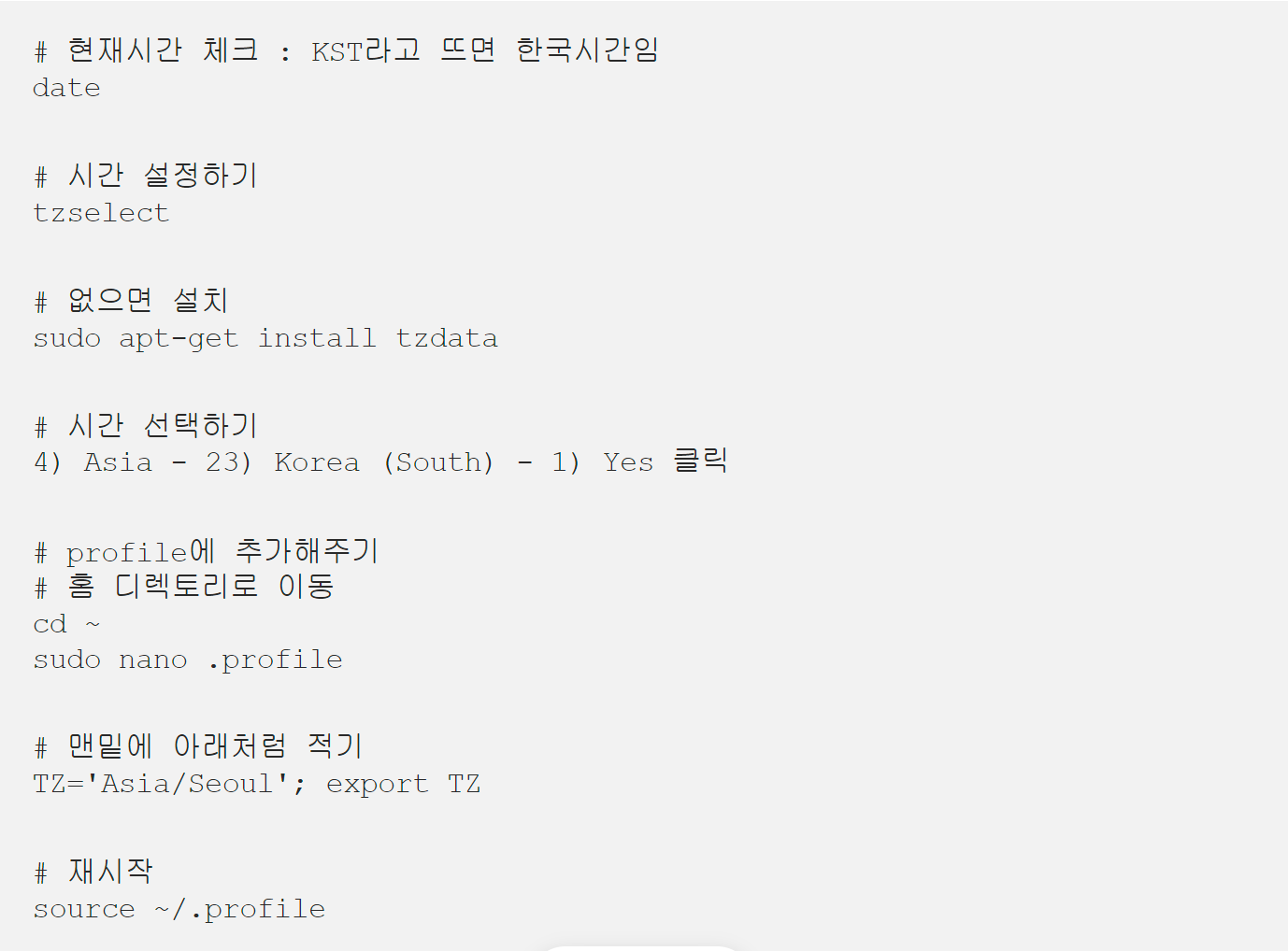 date 명령어 입력 시 KST가 아닐 경우 한국 시간이 아닙니다. 개발하는데 컴퓨터 자체 시간을 불러와야 하는 경우가 있으므로 아래의 내용대로 변경하실 수 있습니다.